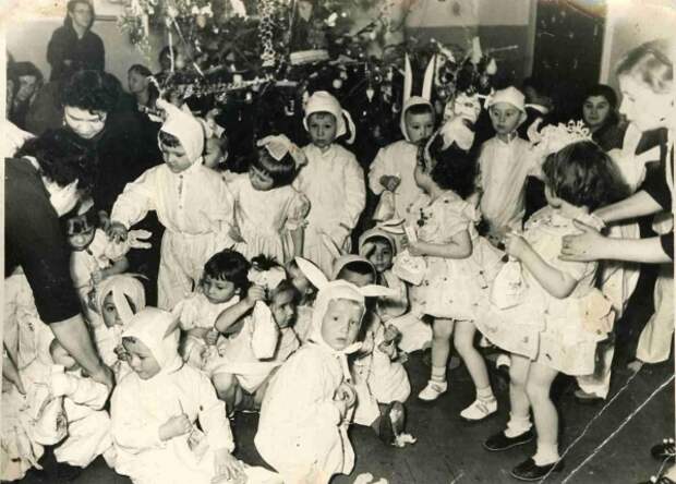 Новогодний утренник в детском саду. Владивосток, 1960 год Во Владивостоке заметку тоже прочитали и моментально организовали елки детям. «Представляете – оперативность? Трудно вообразить, откуда брали игрушки, угощения. Но сделали же! В традицию советского Нового года многое перешло из Рождества, даже звезда на макушке ели осталась – ну разве что из Вифлеемской она стала красной пятиконечной. Правда, этого заимствования старались не замечать и елку стали наполнять другой идеологией – появились советские игрушки, которые каждый год «откликались» на происходящие в стране события. Вспомните, были игрушки-красноармейцы, игрушки-кукурузы, спутники, космонавты. Вся идеологическая машина заработала на этот праздник – запустили даже производство «Советского» шампанского. Постепенно Новый год стал любимым праздником советских людей», – напомнила Лариса Дударовская.