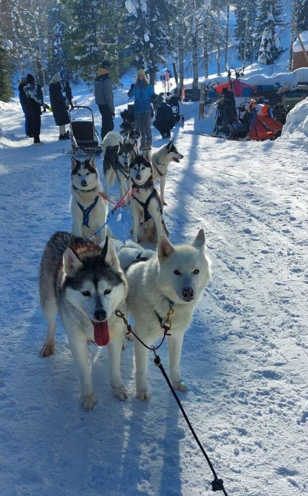 Для тех, кто не хочет вставать на горные лыжи и сноуборд (не говоря уж о сноу-серфе), есть прекрасная возможность прокатиться на беговых лыжах. Рядом с отелем располагается клуб серебряного призера Олимпийских игр Александра Бессмертных. Это человек, увлеченный лыжами и умеющий замотивировать даже тех, кто никогда на них не стоял. Трасса протяженностью 1200 метров была создана при содействии директора «УГМК-Застройщика» Евгения Мордовина – тоже заядлого лыжника. Она пользуется популярностью у гостей, в связи с чем маршрут планируется продлить до 5000 метров. ...и не только лыжи Ну а если на лыжи вставать совсем не хочется или просто есть желание на время сменить вид отдыха, гостей ждет трансфер в зимний парк развлечений, где можно познакомиться с дружелюбными хаски и их родней – чукотскими лайками, а также таймырскими ездовыми собаками. Гонки на упряжках доставляют незабываемые и очень позитивные эмоции. Собаки охотно общаются с приезжими, большинство из них с готовностью дает себя погладить. Владельцы питомника не скрывают, что их первостепенная задача: сохранение и приумножение породы. Но катание на упряжках при этом происходит ежедневно. «Собачки зарабатывают на еду себе… и немного нам», – признается девушка-каюр.