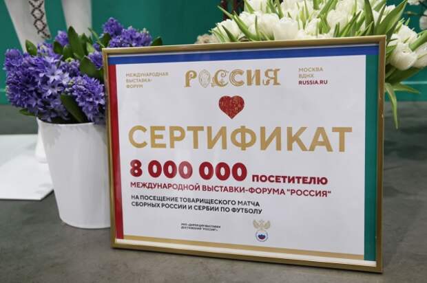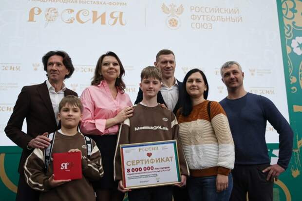 ТЮМЕНЬ, 6 марта, ФедералПресс. Семья Лейзер несколько лет жила в Германии, но недавно решила вернуться на родину, в Тюмень. Они приехали на выставку «Россия», и 14-летний Вадим стал восьмимиллионным гостем, за что получил подарок. Ему вручили сертификат на посещение товарищеского матча России и Сербии.