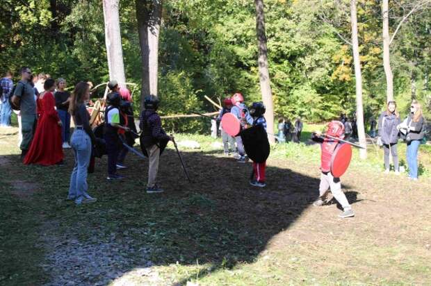На территории музея «Щелоковский хутор» в Нижнем Новгороде 13–14 сентября прошел масштабный фестиваль «Приволжский штандарт», который собрал клубы исторической реконструкции из самых разных городов России. Главной особенностью фестиваля стало то, что на одном поле одновременно можно было увидеть воинов из совершенно разных эпох, которые съехались сюда, чтобы представить зрителям живую историю.