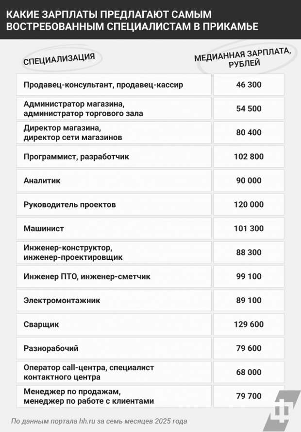 Кому работодатели готовы платить высокие зарплаты? Ответы на эти и другие вопросы – в материале «ФедералПресс».Каких сотрудников больше всего ищут работодатели По словам директора hh.ru Урал Оксаны Сидлецкой, больше всего вакансий за семь месяцев 2025 года в Прикамье открыли работодатели из розничной торговли: они искали 12,9 тысячи сотрудников (это 14 % от общего объема вакансий на рынке – Прим. авт.). На втором месте по этому показателю IT-компании, которые разместили 8,1 тысячи предложений (или 9 %). На третьем месте находятся работодатели из отрасли «Строительство, недвижимость, эксплуатация, проектирование»: они искали 6,9 тысяч сотрудников (7 %). Также в пятерку вошли компании из нефтегазовой сферы (открыли 4,7 тысяч вакансий, доля – 5 %) и отрасли «Телекоммуникации, связь» (4,4 тысячи вакансий, 5 %). «Работодатели из розничной торговли чаще всего ищут продавцов-консультантов, кассиров, администраторов магазинов и торговых залов, директоров супермаркета или сети магазинов. В IT-сфере самый высокий спрос на программистов, разработчиков, аналитиков и руководителей проектов. В строительстве и недвижимости больше всего нуждаются в машинистах, инженерах-конструкторах, инженерах-проектировщиках, инженерах ПТО, инженерах-сметчиках.